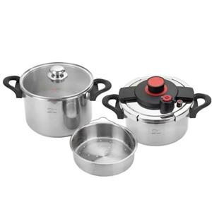 پارس استیل زودپز دوقلوی 3 و 6 لیتری با درب پیرکس و سبد بخارپز