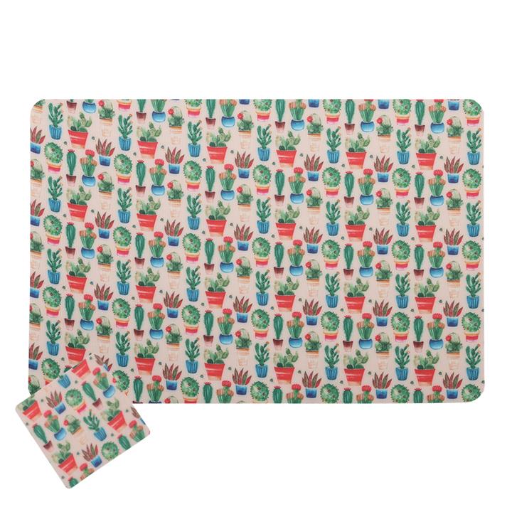 مشخصات فنی زیربشقابی هوم اند لایف مدل باجیکا طرح گلدان کاکتوس بسته 6 عددی به همراه زیر لیوانی