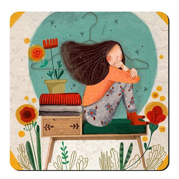 زیر لیوانی طرح دختر در باغ گلها کد nzl27