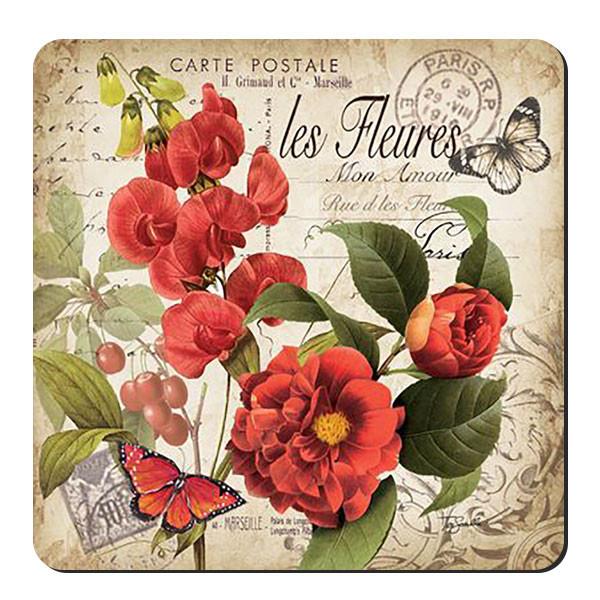 مشخصات فنی زیر لیوانی طرح نقاشی گل و پروانه کد nzl406