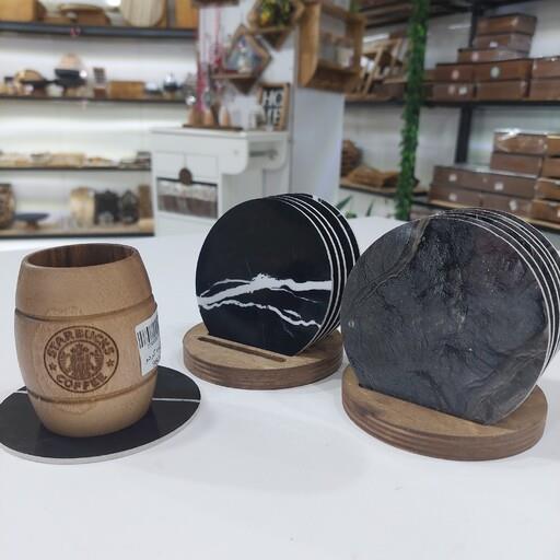 زیر لیوانی 6 عددی طرح سنگ همراه استند چوبی ضد آب برند رایکا