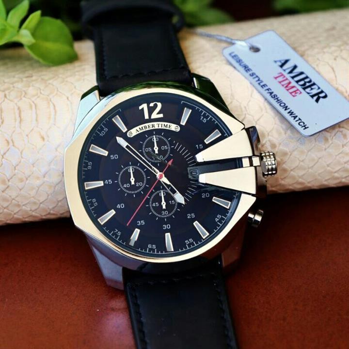 ساعتمچی مردانه اورجینال طرح دیزل شاخدار بند چرم کیفیت قوی Amber time model diesel