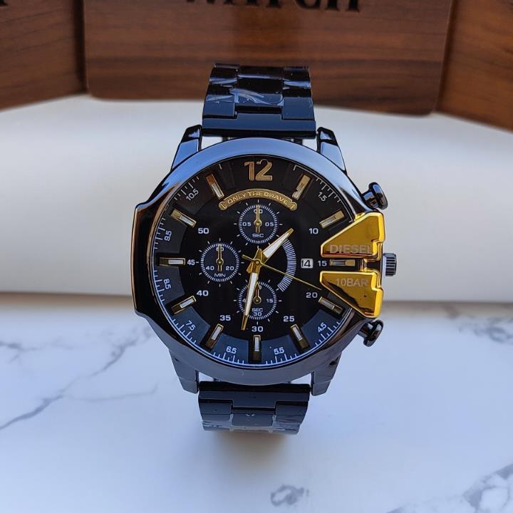 ساعت مردانه دیزل هفت موتوره موتور ژاپن بند فلزی ضد حساسیت رنگ ثابت طلایی صفحه مشکی شیشه ضد خش مقاوم در برابر آب کیفیت عالی کد 1919948