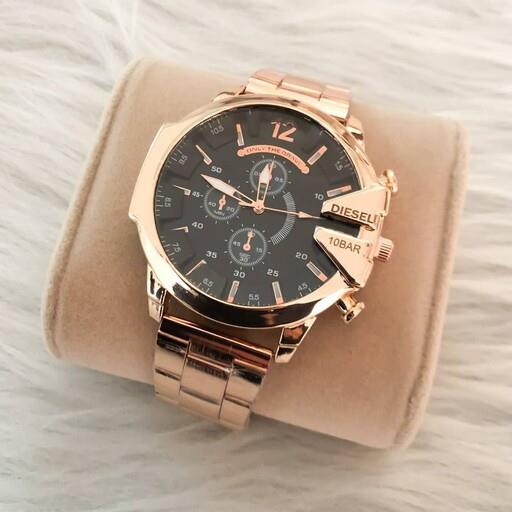 ساعت دیزل مردانه بند استیل رزگلد صفحه مشکی عالی