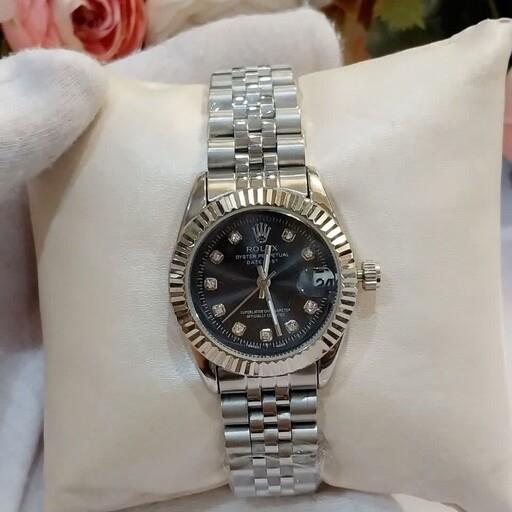 ساعت رولکس زنانه دیت جاست با کیفیت سیلور صفحه مشکی