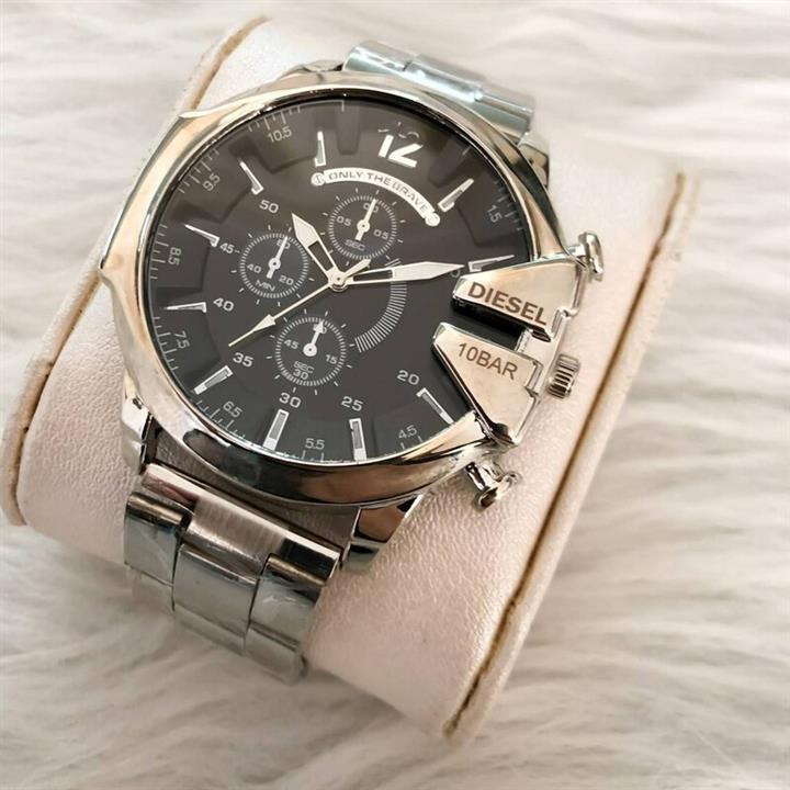 ساعت مردانه دیزل دارای بند استیل نقره ای تک موتوره و کارت