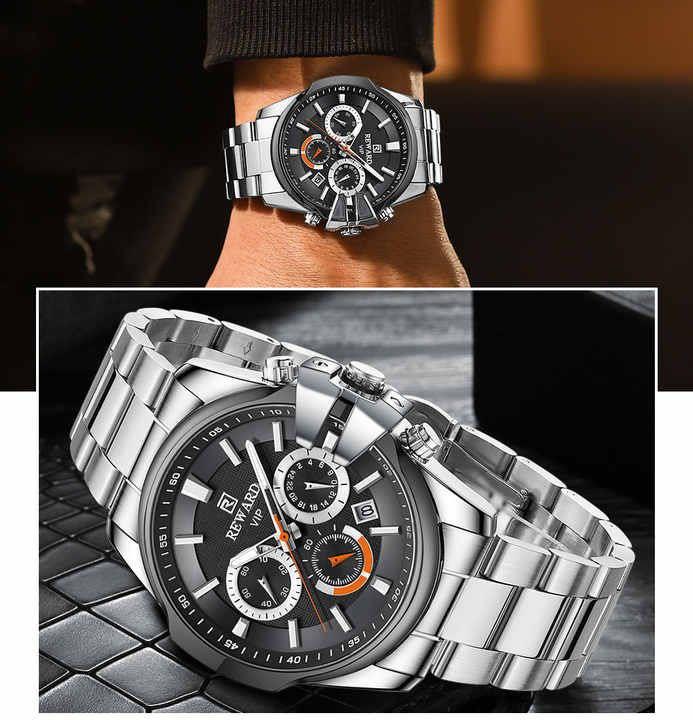 ساعت مردانه فلزی مارک ریوارد ضدآب در حد شستشو سه موتوره فعال تقویم دار جنس بند استیل با کیفیت کد 1918605