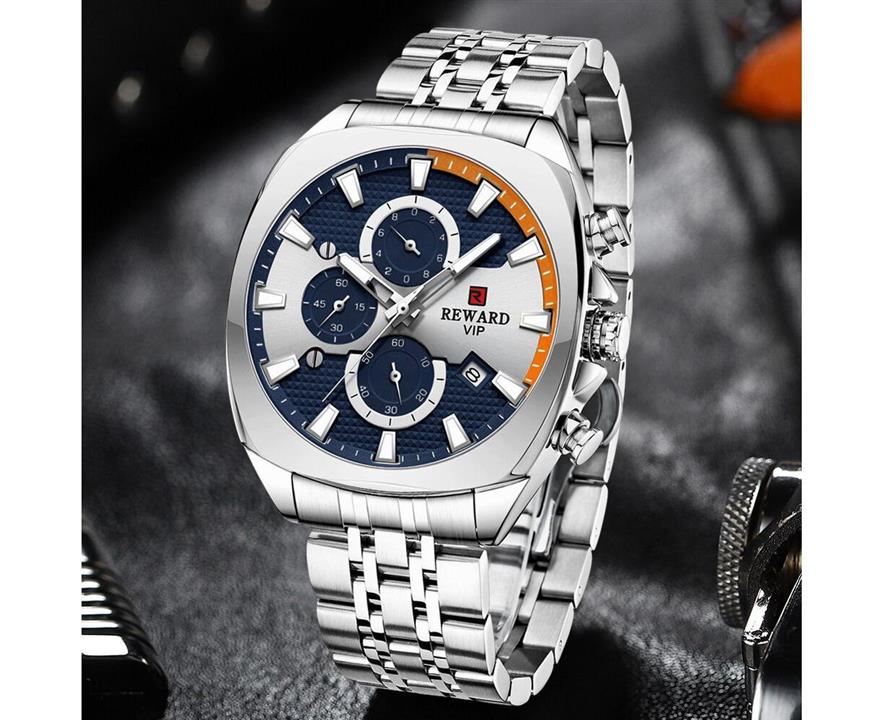 ساعت مچی مردانه ریوارد REWARD مدل 81100 بند استیل صفحه مربعی سه موتوره