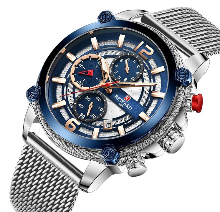 ساعت مردانه فلزی مارک ریوارد مدل 82022 جنس بند حصیری با کیفیت سه موتوره فعال تقویم دار دار کد 1918903