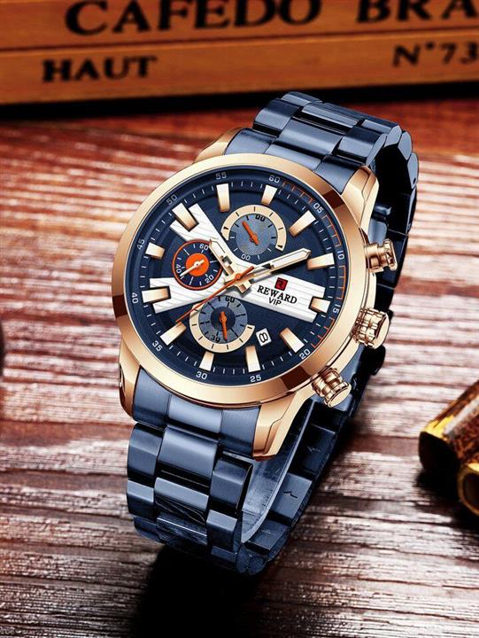 ساعت مردانه فلزی مارک ریوارد مدل 81011 سه موتوره فعال رنگ ثابت کیفیت عالی تقویم دار حک مارک روی قفل دارای جعبه و پاکت اصلی کد 1922441