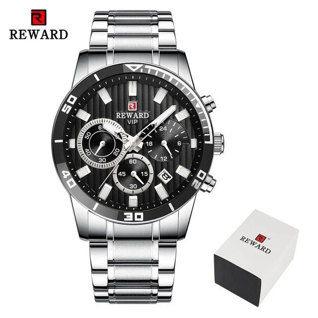 ساعت مردانه فلزی مارک ریوارد مدل 81011 سه موتوره فعال رنگ ثابت کیفیت عالی تقویم دار حک مارک روی قفل دارای جعبه و پاکت اصلی کد 1922441