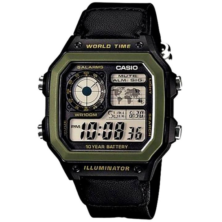 ساعت کاسیو مردانه بند برزنت مشکی دیجیتالی AE-1200WHB-1BVDF