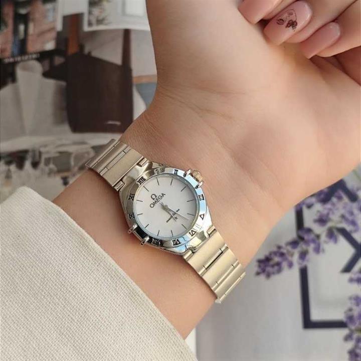 ساعت مچی زنانه امگا صفحه گرد سفید بنده استیل نقره ایی کد 199...