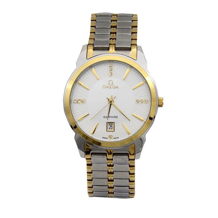 ساعت امگا کانسلیشن مردانه دورنگ طلایی صفحه سفید صدفی ایندکس نگین Omega-5158-G