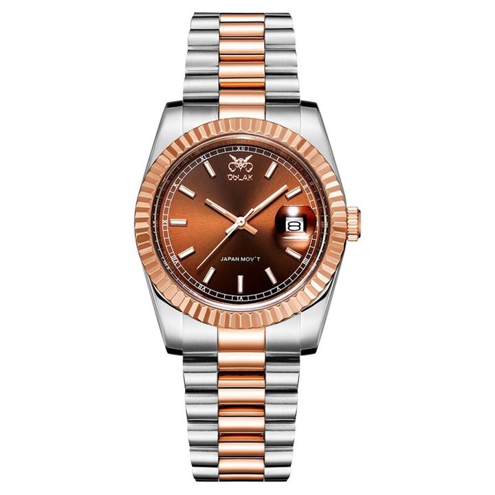 ساعت مچی عقربه ای مردانه اوبلاک مدل 72692رنگ استیل رزگلد صفحه کافی