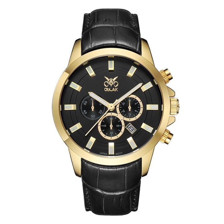 ساعت مچی عقربه ای مردانه اوبلاک مدل 72697رنگ طلایی صفحه مشکی