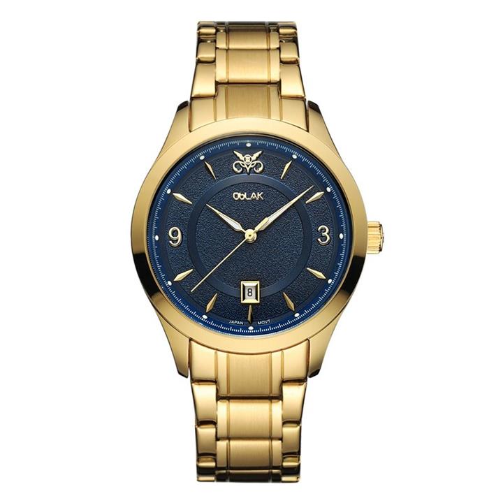 ساعت مچی عقربه ای مردانه اوبلاک مدل 72700 رنگ طلایی صفحه سورمه ای