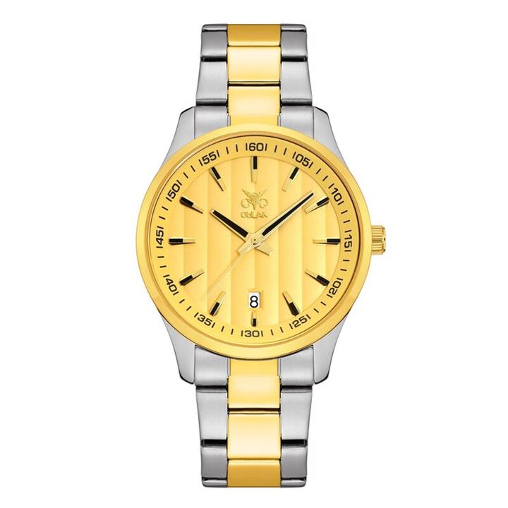 ساعت مچی عقربه ای مردانه اوبلاک مدل 72703 رنگ دو رنگ صفحه زرد