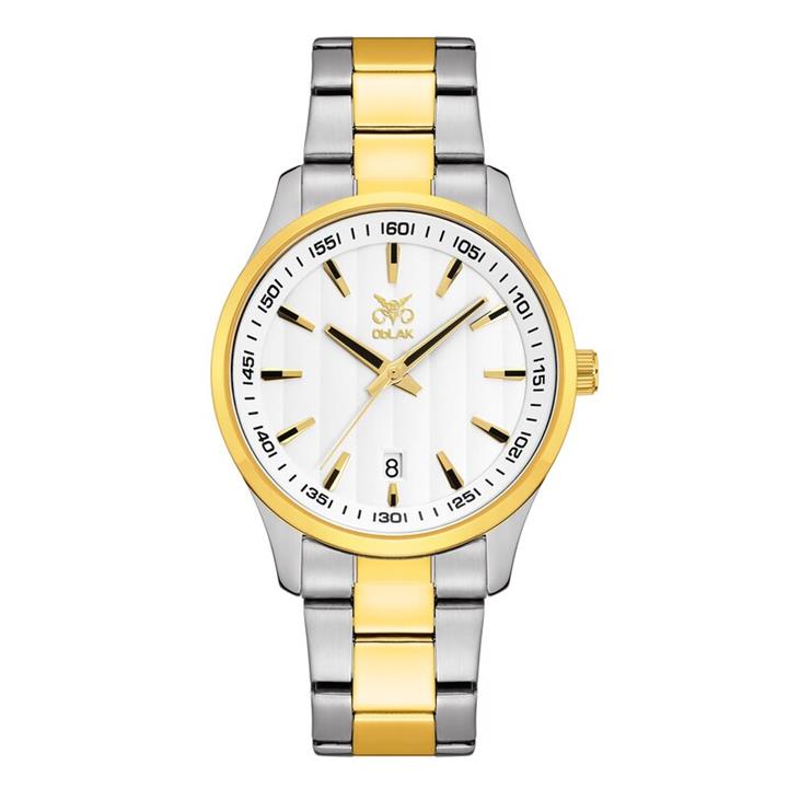 ساعت مچی عقربه ای مردانه اوبلاک مدل 72703 رنگ دو رنگ صفحه سفید