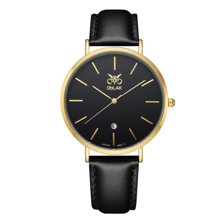 ساعت مچی عقربه ای مردانه اوبلاک مدل 72705رنگ طلایی صفحه مشکی