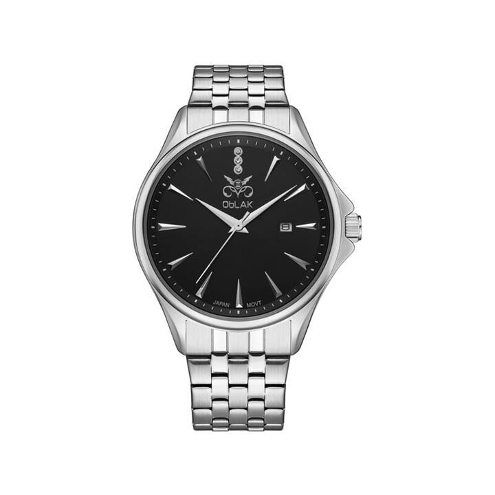 ساعت مچی عقربه ای مردانه اوبلاک مدل 72712 رنگ استیل صفحه مشکی