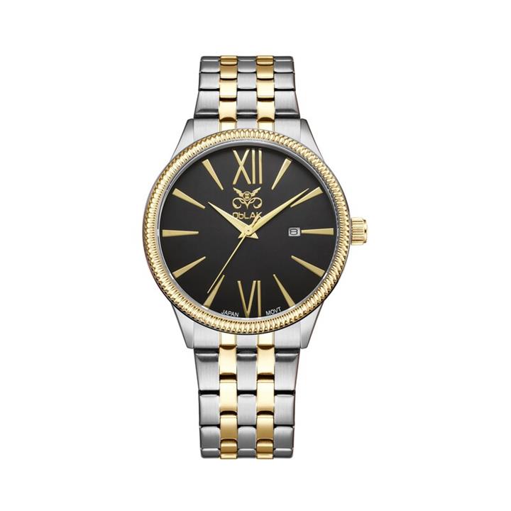 ساعت مچی عقربه ای مردانه اوبلاک مدل 72713 رنگ دورنگ صفحه مشکی