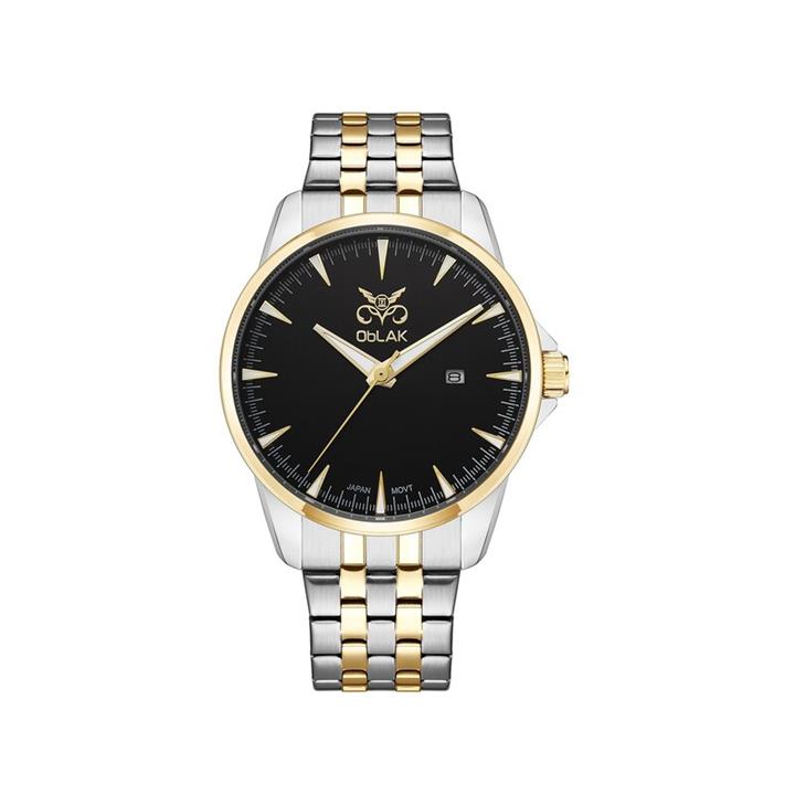 ساعت مچی عقربه ای مردانه اوبلاک مدل 72716 رنگ دورنگ صفحه مشکی