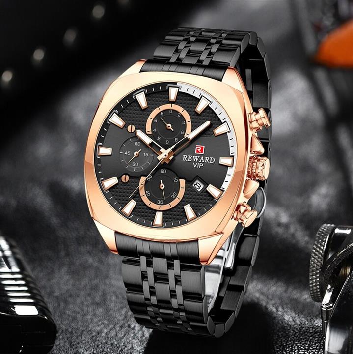 ساعت مچی مردانه ریوارد REWARD مدل 81100 بند استیل صفحه مربعی سه موتوره