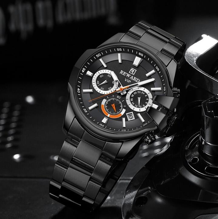 ساعت مردانه فلزی مارک ریوارد مدل 81011 سه موتوره فعال رنگ ثابت کیفیت عالی تقویم دار حک مارک روی قفل دارای جعبه و پاکت اصلی کد 1922440