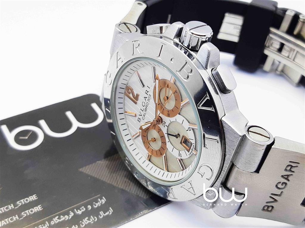 ساعت بولگاری مردانه استیل کرنوگراف صفحه اسکلتون bvlgari 2363