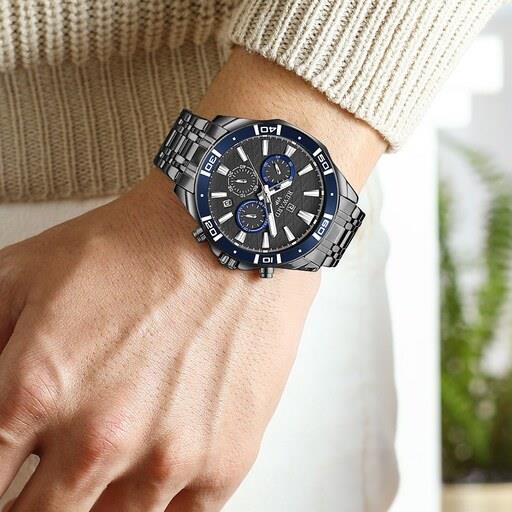 ساعت مردانه فلزی مارک ریوارد مدل 81011 سه موتوره فعال رنگ ثابت کیفیت عالی تقویم دار حک مارک روی قفل دارای جعبه و پاکت اصلی کد 1922441