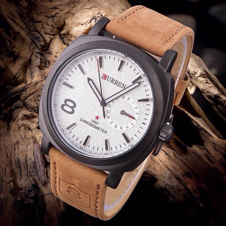 ساعت مچی مردانه کارن بند چرمی CURREN 8139 ساعت اورجینال ضداب - قهوهای سفید