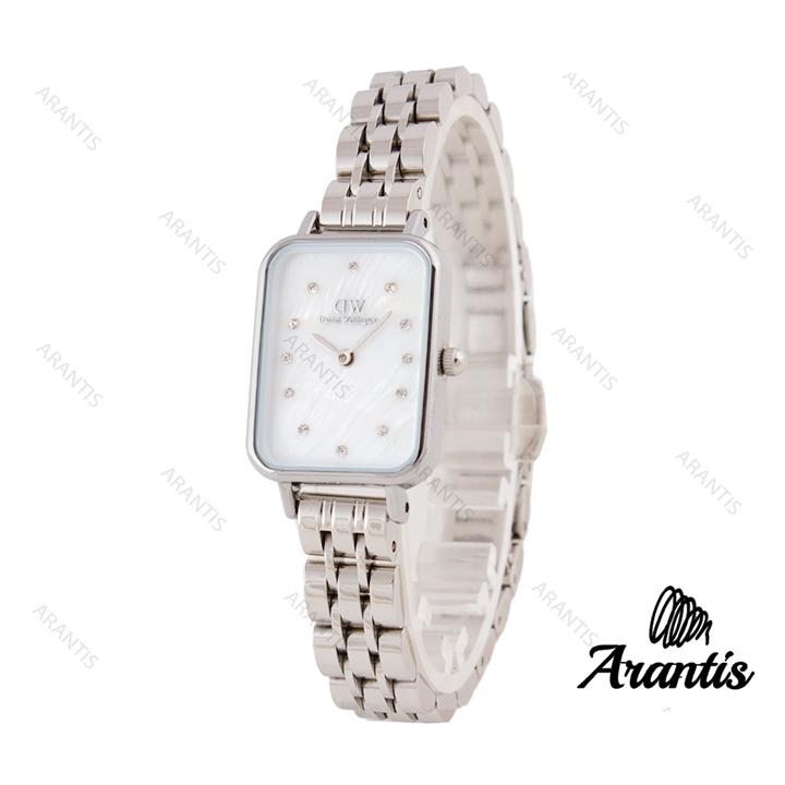 مشخصات فنی ساعت DW زنانه مستطیلی سیلور صفحه سفید صدفی w-3065