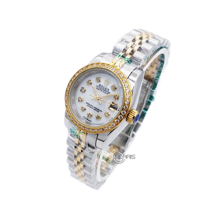 ساعت رولکس زنانه دیت جاست اتوماتیک استیل قاب نگین صفحه سفید ...