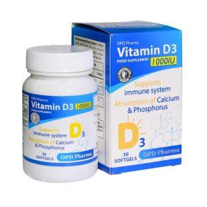 سافت ژل ویتامین D3 1000 واحد او پی دی فارما 30تایی