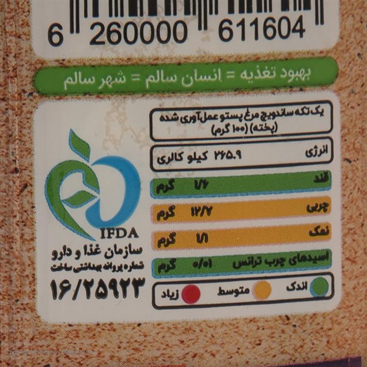 مشخصات فنی ساندویچ چاباتا مرغ پستو گاردو وان - 240 گرم