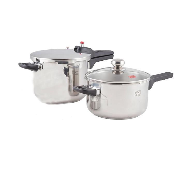 زودپز دوقلو پارس استیل 4.5 و 6 لیتری با درب و صافی بخار پز