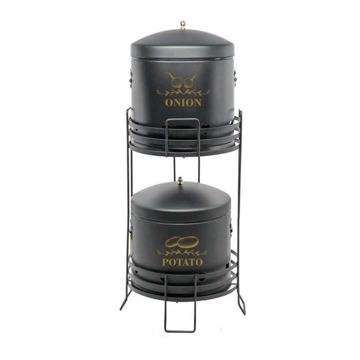پک جا سیبزمینی و پیاز استوانهای گنبدی تسمهای مشکی با طراحی مقاوم و تهویه مناسب، انتخابی شیک و کاربردی برای نگهداری سیبزمینی، پیاز در آشپزخانه است. این محصول با دربهای محکم و بدنه زیبا، علاوه بر حفظ تازگی مواد غذایی، جلوهای منظم و شیک به محیط میبخشد.