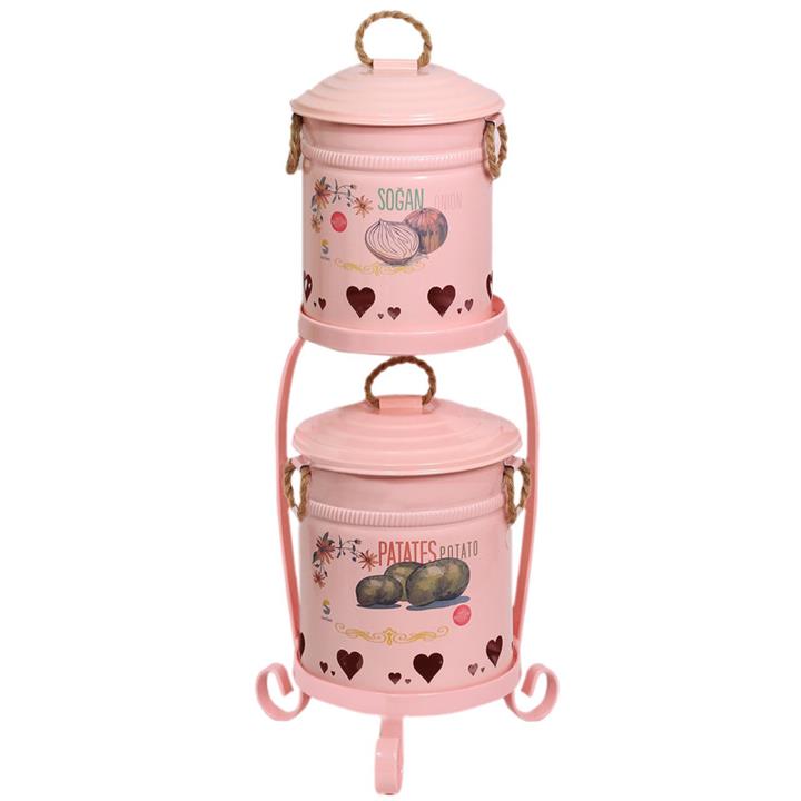 این محصول سه تیکه شامل دو عدد سطل (جای سیب زمینی و جای پیاز) و یک عدد پایه ( استند ) می باشد.\r\nمحصول قابلیت شستشو را دارا بوده و ماندگار محصول به علت پوشش دهی با رنگ الکترو استایتک بالا می باشد. و این باعث عدم خرابی یا زنگ زدن محصول در دراز مدت می گردد.\r\nشایان ذکر است که رنگ بندی محصول برای هماهنگی و هارمونی محصول با آشپزخانه بوده است.