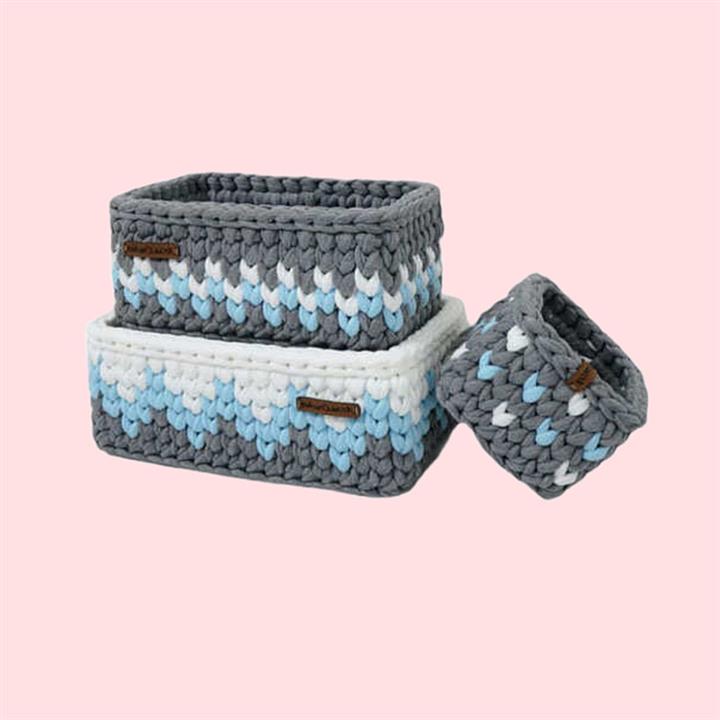 مشخصات فنی سبد قلاب بافی تریکو طرح سیسمونی نوزادی کد 01 مجموعه 3 عددی