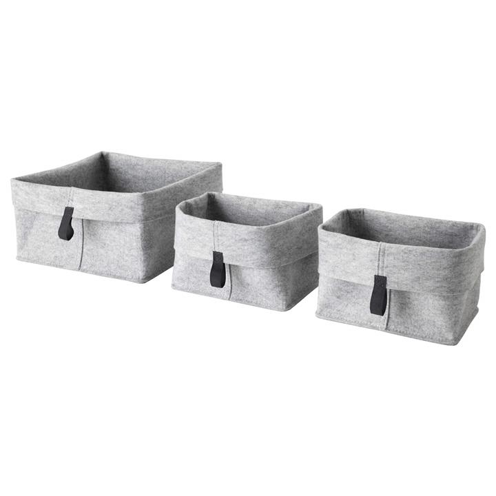 ست سبد پارچه ای سه تایی ایکیا مدل RAGGISAR رنگ خاکستری