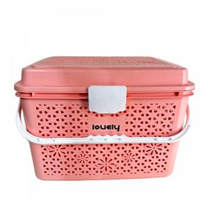 سبد پیک نیک بزرگ لاولیرنگ بندی طوسی وصورتی وسفید