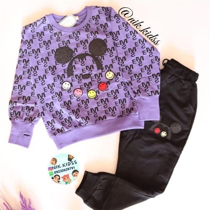 بلوز و شلوار دخترانه میکی جنس دورس و ملانژ پنبه