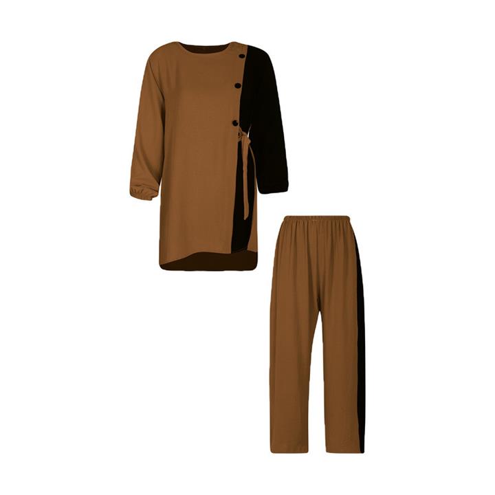 ست تونیک و شلوار دخترانه مدل ابروبادی ترکیبی کد 706 رنگ قهوه...