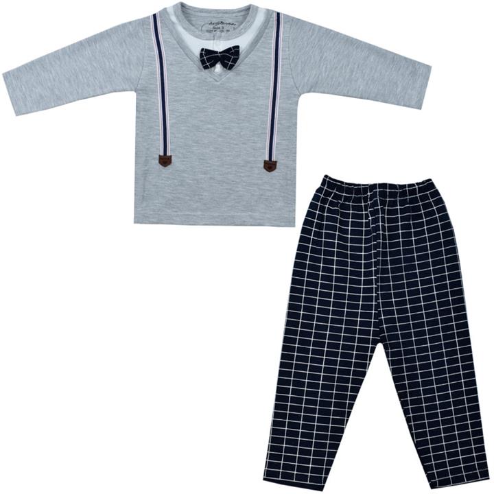 ست تی شرت و شلوار نوزادی مدل ارغوان بندی چهارخونه