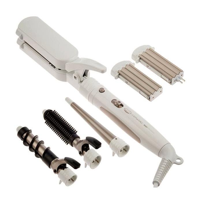 دارای 4 سری فر کنندهی مخروطی، فر کنندهی استوانهای متوسط و بزرگ، یک جفت اتو مو و موجدار کنندهی مو،