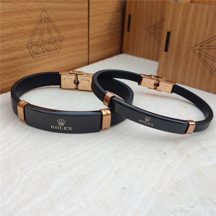 ست دستبند چرمی رولکس مشکی