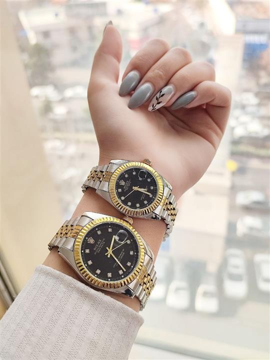 ست ساعت زنانه و مردانه مارک رولکس تقویم دار رنگ ثابت صفحه مشکی قفل ضامن دار کد 2116376