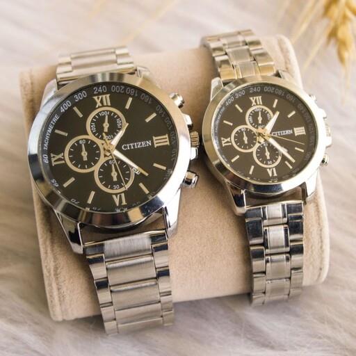 ست ساعت زنانه و مردانه سیتیزن بند چرم قهوه ای