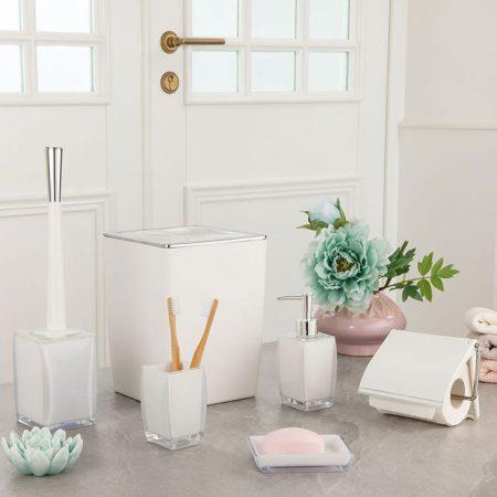 سطل: 19x19x25 cm فرچه: 10x9x38 cm جامایعی: 8.5x6x17 cm جامسواکی: 7x6x10.5 cm جاصابونی: 12.5×8.5×2.5 cm جادستمالی: 13×15 cm